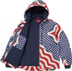 Quilted cotton canvas with printed pattern. 3M® Thinsulate™ insulation, cotton poplin lining and quilted taffeta sleeve lining. Full zip closure with pouch pocket at lower front, zip and patch pockets at chest. Interior zip and velcro patch pockets. Interior knit rib collar and cuffs.