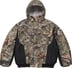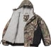 Waterproof, breathable GORE-TEX 2-Layer poly shell with taped seams, fill and quilted cotton jersey lining. Full zip closure with hidden velcro placket. Welt snap hand pockets at lower front, welt zip chest pocket and interior zip pocket. Interior elastic shockcord at fixed hood. Knit rib interior cuffs and hem. Embroidered logos on chest, hood and sleeves. Woven logo label at back neck tab.