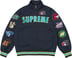 Brushed-back fleece with tackle twill logo appliqué and embroidered graphics.