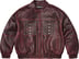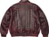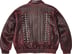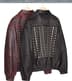 Lambskin leather with satin lining and full zip closure. Double welt hand pockets at lower front with zip chest pockets and interior chest pocket. Elasticized leather cuffs and hem. Metal studs at front and back. Metal studded logo appliqué at back neck.