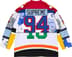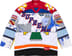 Poly sand knit jersey with paneled patchwork pattern and tackle twill appliqué.
