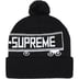 Acrylic cuffed beanie with jacquard knit graphic at crown and embroidered logo on cuff.