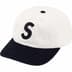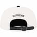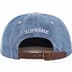 All cotton chino twill 6-Panel hat with custom debossed leather strap closure. Embroidered logos on front and back.