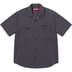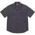 Cotton blend twill with utility pockets at chest. Embroidered logo at chest and embroidered graphic at back. Original embroidered artwork by AOI.