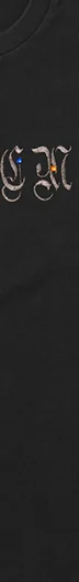 All cotton jersey crewneck with embroidered logo and rhinestones on chest. Original embroidered artwork by AOI.