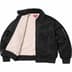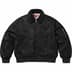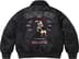 Water resistant nylon flight satin twill with fill, faux shearling lining and quilted taffeta sleeve lining. Full zip closure with snap welt hand pockets at lower front. Utility pocket on sleeve and interior chest pocket. Faux fur collar with knit rib cuffs and hem. Embroidered logo on chest and embroidered graphic on back. Embroidered twill patch at lower back. Original embroidered artwork by AOI.