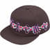 All cotton chino twill 5-Panel hat with snap closure. Embroidered logo on crown. Original embroidered artwork by AOI.