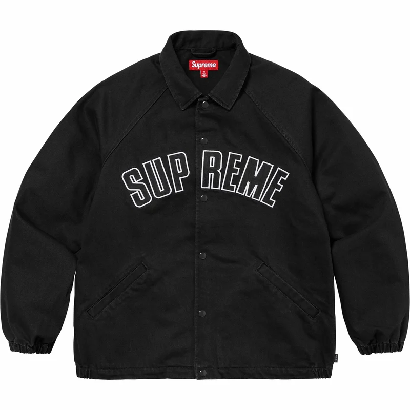 All cotton 13 oz. denim with snap front closure. Welt hand pockets at lower front. Elastic cuffs and hem. Logo appliqué at chest.