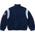 Deep pile fleece with half zip closure. Welt hand pockets at lower front with elastic cuffs and hem. Chenille logo appliqué at chest with tackle twill patch at sleeve.