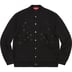 Wool blend with beaded appliqué and poly lining. Button front closure with hand pockets at lower front.