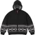 Wool blend with full zip closure and on seam hand pockets at lower front. Hand-beaded appliqué at lower front and cuffs. Hand-beaded logo appliqué at hood and back hem.