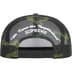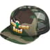 Poly 5-Panel hat with mesh back and snap closure. Printed graphic on front. Embroidered logo and graphic on back.