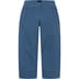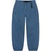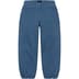 All cotton with on seam hand pockets and back welt pockets. Welt utility pockets at thighs. Elastic waistband with zip fly, snap closure, nylon webbing and plastic slider. Interior elastic shockcord at cuffs. Embroidered logo on pocket flap.