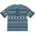 All cotton pique with stripe rib collar. Printed graphics on front and back. Embroidered logos on front and embroidered graphics on back.