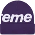 Cashmere blend cuffed beanie with jacquard logo at crown.