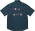 Cotton blend twill with utility pockets at chest. Embroidered logo patch on chest and glitter printed graphic on back. Original artwork by Maggie Lee.
