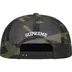 Cotton blend twill 5-Panel hat with mesh back and snap closure. Embroidered patch on front and embroidered logo on back.