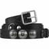 blackmeans cowhide leather with engraved concho appliqué. Debossed logo at front and foil logo at back. Made in Japan exclusively for Supreme.