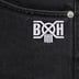 All cotton 13 oz. denim with enzyme wash. Classic 5-pocket style with button fly, single coin pocket and leather logo patch on back. Embroidered graphic at left pocket and printed graphic at seat.