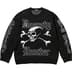 Acrylic with jacquard knit graphics at front, sleeves and back hem.