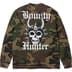 All cotton waffle thermal henley with three-button placket. Printed graphics on chest and back.