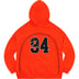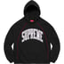 Brushed-back fleece with boxy fit and pouch pocket. Chenille embroidered logo on chest. Vinyl graphic appliqué on back.