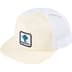 Cotton blend twill 5-Panel hat with mesh back and snap closure. Woven patch on front and embroidered logo on back.