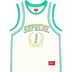 Poly sand knit jersey with tackle twill logo appliqué at chest and graphic at back. Athletic label at lower front.