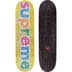 Supreme skate deck with natural veneer and black top ply. Printed logo on bottom with printed World Famous and box logo on top.
