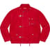 All cotton canvas with full zip closure and lobster clip placket. Snap flap hand pockets at lower front. Snap patch pocket at chest with side zip entry. Removable hood and interior drawcord at hem. Embroidered logo on chest pocket.