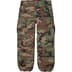 All cotton ripstop with enzyme wash. Snap flap slanted front pockets and snap flap back pockets. Snap flap cargo pockets at thighs. Zip fly, snap closure, twill tape size adjusters at waist and drawstring at cuffs.