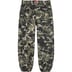 All cotton with enzyme wash. Slanted front pockets and snap flap back pockets. Snap flap cargo pockets at thighs and lower legs. Button fly closure, twill tape size adjusters at waist and drawstring at cuffs.