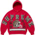 Brushed-back fleece with pouch pocket. Printed graphic on front with metal studs.