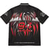 Poly jersey with printed graphic and stripe rib collar. Printed graphics on sleeves and back.