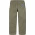 All cotton chino twill with enzyme wash. Relaxed fit with on seam hand pockets, welt back pockets, hidden coin pocket and button fly closure. Embroidered logo on back pocket.