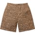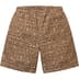 Poly blend with jacquard woven pattern and mesh lining. On seam hand pockets and single back zip pocket. Elastic waistband with interior drawcord.