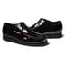 Patent leather upper and vamp. Leather lining and co-branded footbed with natural crepe sole. Made exclusively for Supreme.