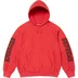 Brushed-back fleece with rib gussets and pouch pocket. Printed logos on sleeves and back hem.