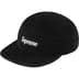 All cotton corduroy Supreme camp cap with custom debossed leather strap closure.