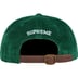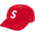 All cotton corduroy 6-Panel hat with custom debossed leather strap closure. Embroidered logos on front and back.