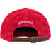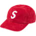 All cotton corduroy 6-Panel hat with custom debossed leather strap closure. Embroidered logos on front and back.