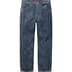 All cotton 13 oz. denim with hand-applied crackle treatment. Classic 5-pocket style with button fly, single coin pocket, copper oxide rivets and leather logo patch on back.