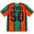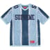 Acrylic knit eyelet mesh. Tackle twill appliqué at chest, shoulders and back. Athletic label at lower front.