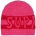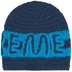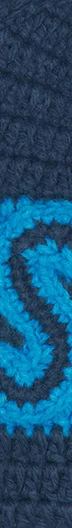 Acrylic beanie with hand-crochet logo appliqué.