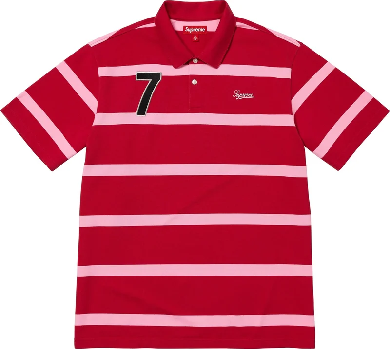 All cotton pique polo with two-button placket. Embroidered graphic and logo on chest. Embroidered graphic and satin appliqué at back.