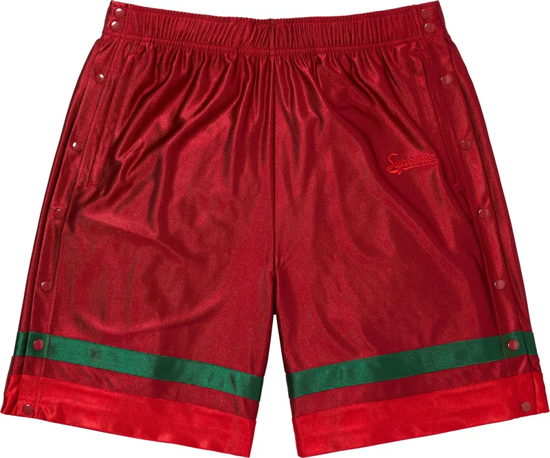 Poly dazzle with full-leg side snap opening. Welt zip hand pockets and single back zip pocket. Elastic waistband with interior drawcord. Embroidered logo at thigh.