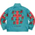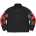 All cotton chino twill with full zip closure. Two-button closure at collar and welt hand pockets at lower front. Tab adjusters at cuffs and elastic hem. Printed graphics on sleeves and back. Original artwork by Sue Clowes.