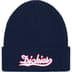Acrylic cuffed beanie with woven logo label at front and raised embroidered logo on back.