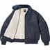 Water resistant nylon flight satin twill with fill, faux shearling lining and quilted tafetta sleeve lining. Full zip closure with snap welt hand pockets at lower front and utility pocket on sleeve. Faux fur collar with knit rib cuffs and hem. Woven logo label at lower front. Made exclusively for Supreme.