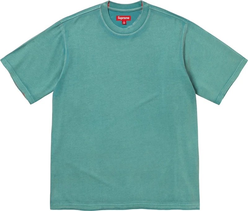 All cotton jersey crewneck with discharge printed logo at back hem.